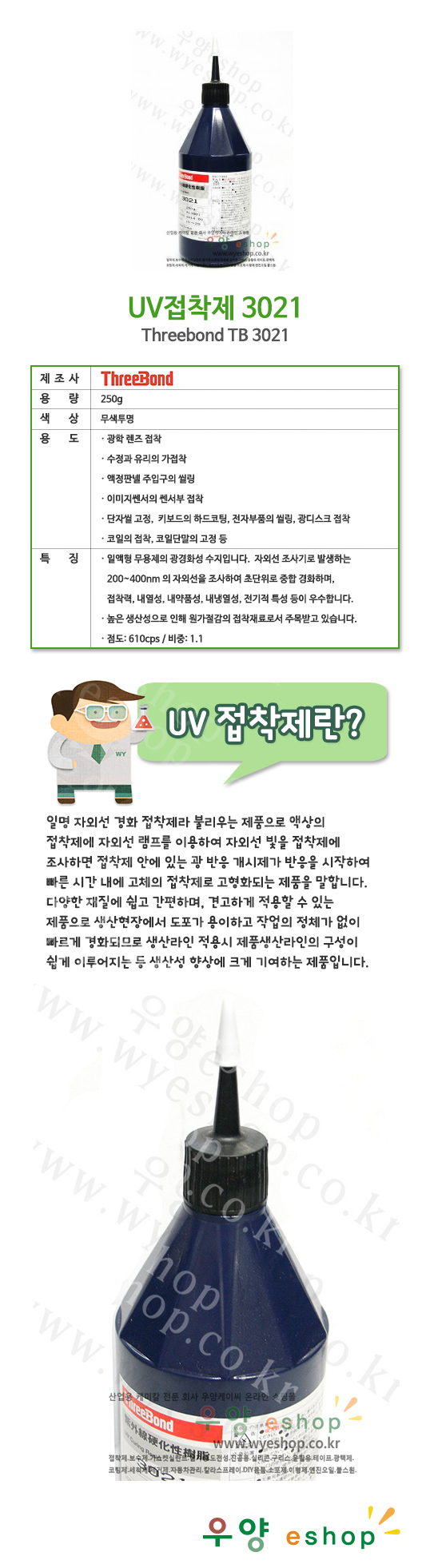 ¾²¸®º»µå(Threebond) 3021 UVÁ¢ÂøÁ¦ 250g