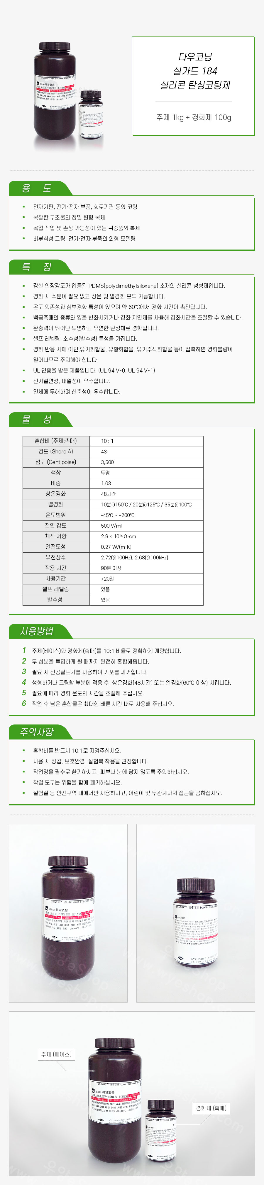 ´Ù¿ìÄÚ´×(Dow Corning) ½Ç°¡µå 184 ½Ç¸®ÄÜź¼ºÄÚÆÃÁ¦ (ÁÖÁ¦1kg+°æÈ­Á¦100g)