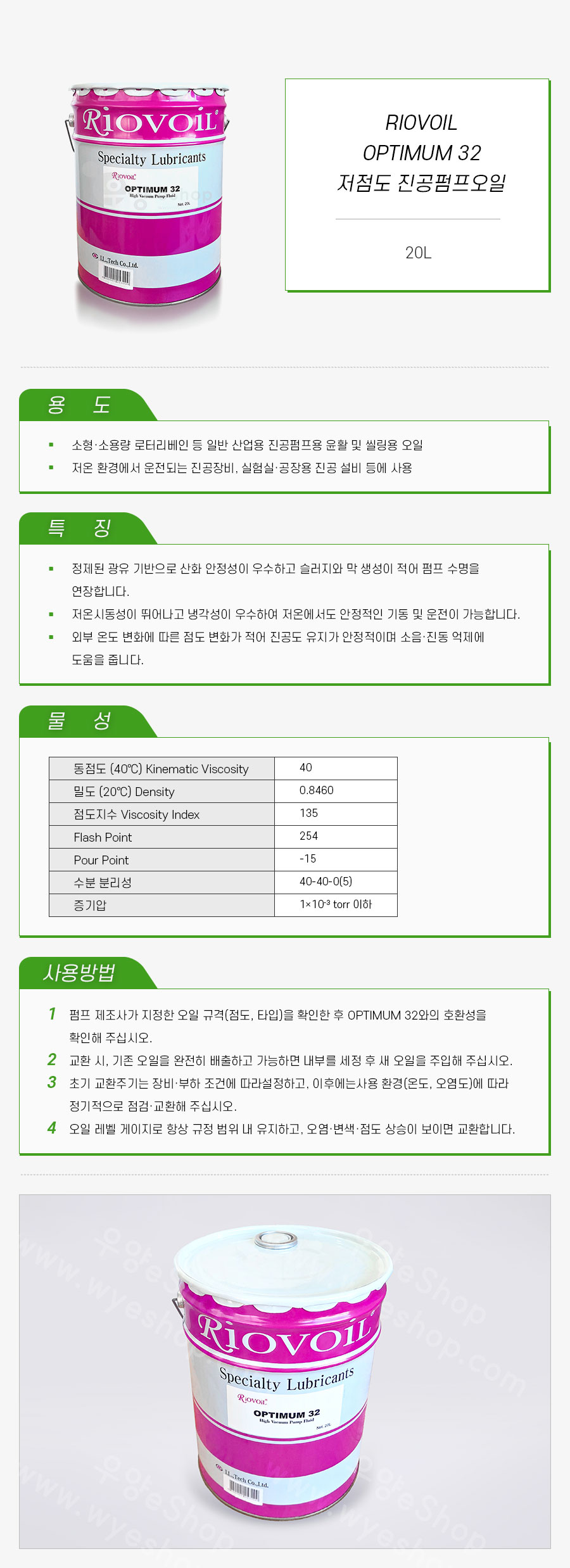 Riovoil OPTIMUM 32 ±¤À¯°è ÀúÁ¡µµ Áø°øÆßÇÁ¿ÀÀÏ 20L